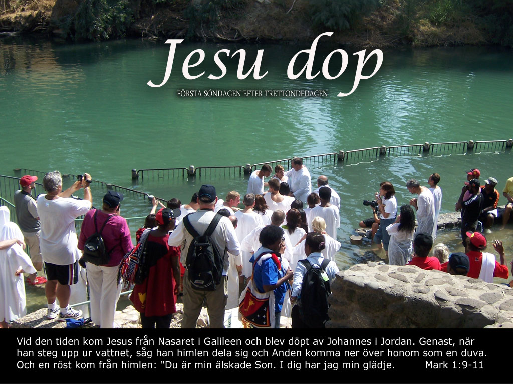 Den första söndagen efter trettondagen firar vi Jesu dop. Dopet innebär för oss ett nytt liv i kristus.